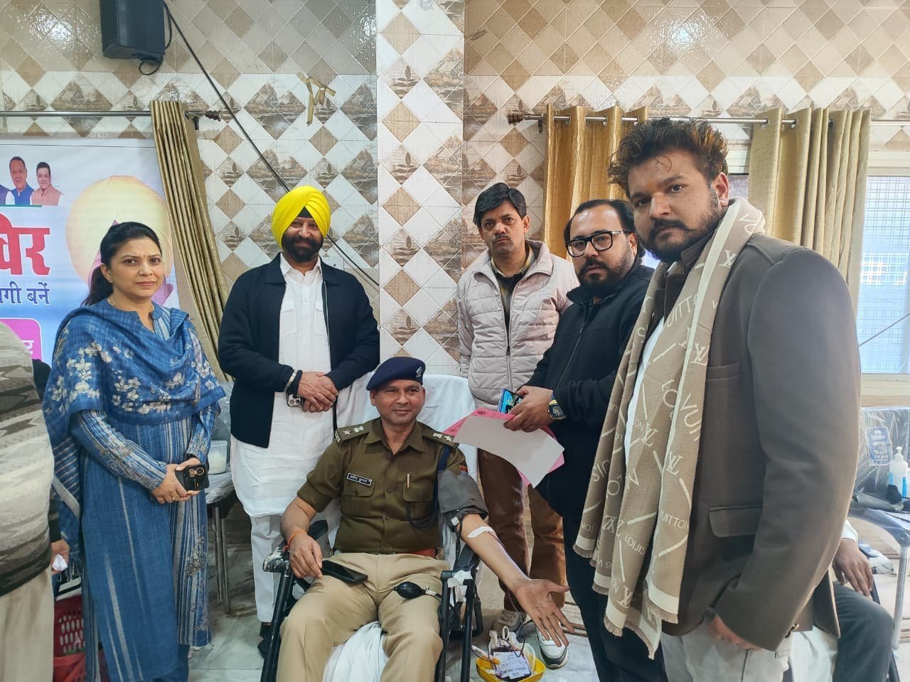 देहरादून- विगत वर्षों की भांति इस वर्ष भी 34वां स्वैच्छिक रक्तदान शिविर पार्षद संतोख सिंह नागपाल के जन्मदिन के उपलक्ष्य में कालिका मंदिर मार्ग स्थित श्री गुरुद्वारा अमृत दरबार में आयोजित किया गया । संजीव विज (मीडिया प्रभारी, भाजपा) द्वारा बताया गया कि आयोजन में मुख्य रूप से राजपुर रोड विधानसभा विधायक खजान दास, देहरादून नगर निगम मेयर सौरभ थपलियाल, पुनीत मित्तल प्रदेश कोषाध्यक्ष, अनिल गोयल एवं महानगर जिला अध्यक्ष भारतीय जनता पार्टी, सिद्धार्थ उमेश अग्रवाल, अशोक वर्मा, हरीश डोरा, अर्चित डावर, सुनील मैसन व अंबेडकर नगर मंडल अध्यक्ष पंकज शर्मा, विशाल गुप्ता, वैभव अग्रवाल पार्षद, विजय कोहली, योगेश व्यास, हरजीत सिंह, सतीश साहनी, रमन अलग, चंदन दुआ, तरनदीप सिंह मनी, दीपक ग्रोवर आदि क्षेत्र के गण मान्य लोगों ने इस स्वैच्छिक रक्तदान शिविर में बढ़-चढ़कर भाग लिया। स्वैच्छिक रक्तदान शिविर में मुख्य रूप से गुरुद्वारा श्री गुरु अमृत दरबार के प्रबंधक कमेटी के समस्त सदस्यों में संजय कुकरेजा, दलजीत सिंह, भूषण साहनी, मनोज साहनी, सतीश साहनी, अनित ननकानी, , श्री महंत इन्दिरेश अस्पताल की ब्लड बैंक टीम के समन्वयक अमित चंद्रा के नेतृत्व में इस स्वैच्छिक रक्तदान शिविर का आयोजन किया गया जिसमें 230 (दो सौ तीस) यूनिट रक्त का संग्रह किया गया । संतोख नागपाल द्वारा सभी आए हुए अतिथियों का आभार प्रकट किया गया।